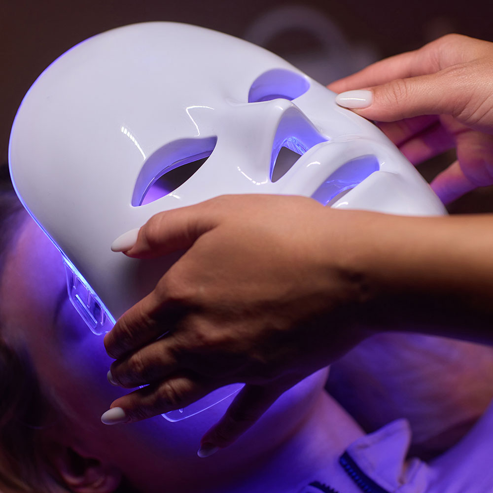 Lightweight and ergonomic, the mask fits comfortably so you can relax, read, or unwind during your treatment.